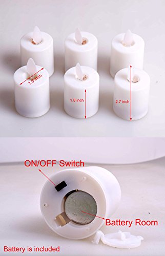 With battery included, LED lights, smoke-free, never to worry about fire saftey. With On / Off switch located at the bottom. One battery can last for 2-3 days.