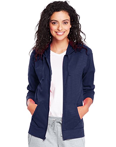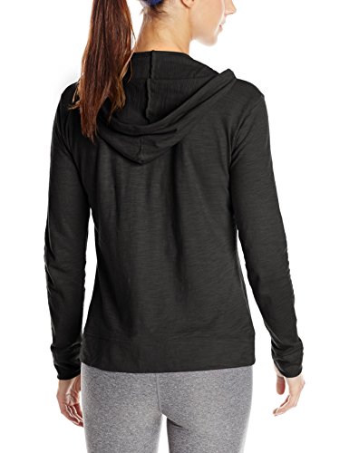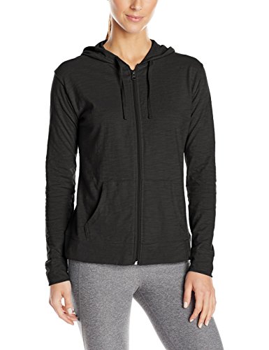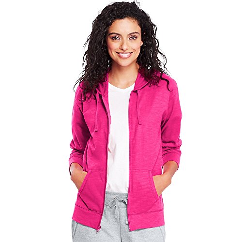 This Hanes women's slub shirred hoodie has all of the classic hoodie features in a lightweight, textured-looking slub fabric.