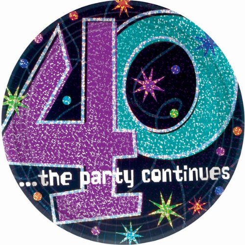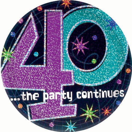 The Party Continues 40th Birthday Party Round Dessert Prismatic Plates Tableware, Pack of 8, Mu...