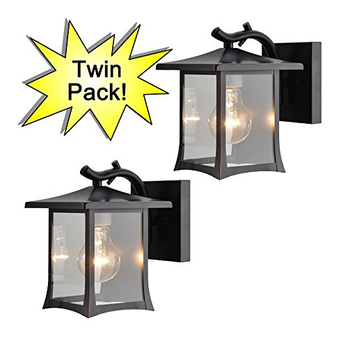 Hardware House 19-1975 Oil Rubbed Bronze Mission Style Outdoor Patio / Porch Wall Mount Exterior Lighting Lantern Fixtures with Clear Glass - Twin Pack