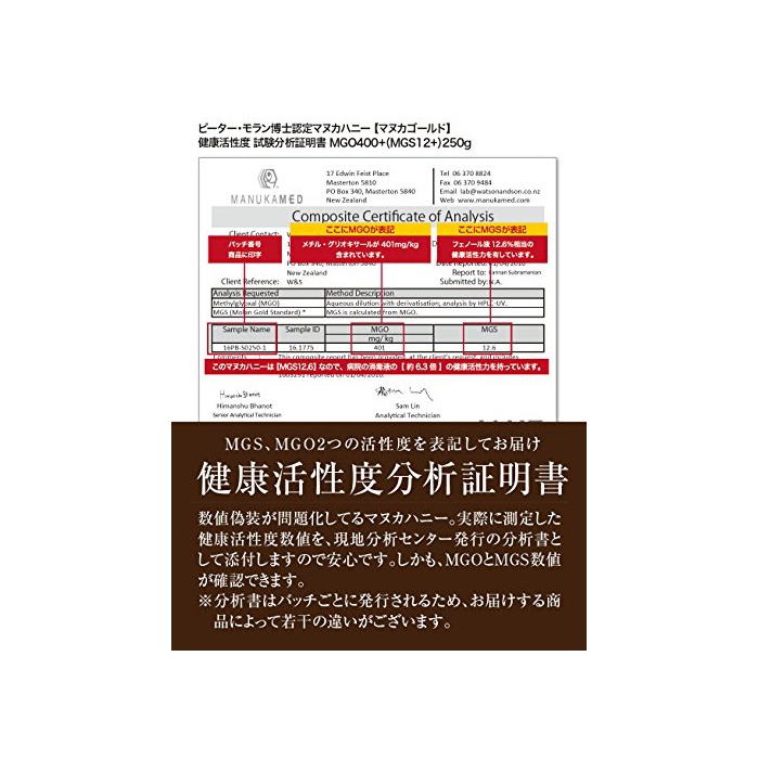 【시험 분석서&MGS인정증 첨부(부)】현지 발행 활성 도분석서와 정부 표준의 인정증을 붙여 전달합니다.수치를 부디 확인해 주십시오!