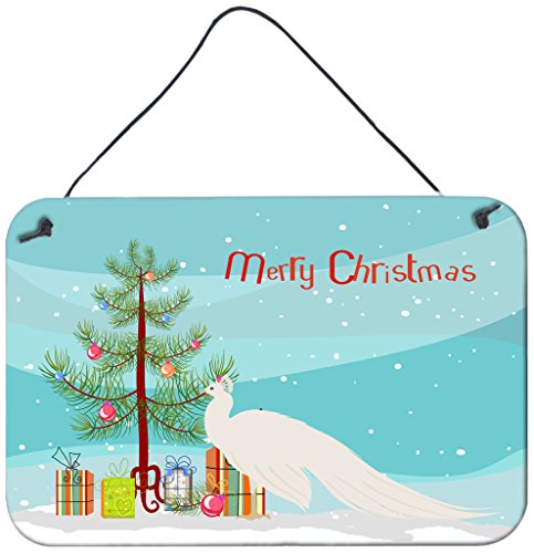 Caroline's Treasures White Peacock Peafowl Christmas Metal Print, 8" x 12", Multicolor