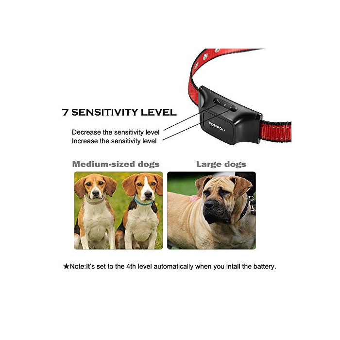 FONPOO FP680S 전개 종 대응 낭비 짖어 방지 목걸이 경고음과 정전쇼크 감도로 조절 가능 애완동물 safe 바크 콘트롤 컬러