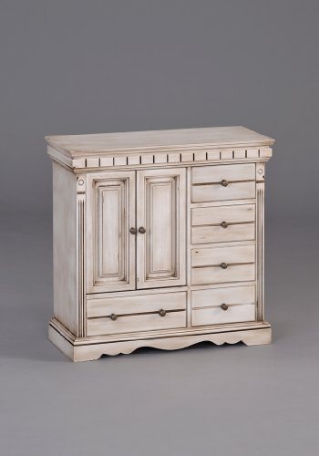 -. Binding : Kitchen -. Brand : AMERIHOMESTORE -. Color : AGED WHITE -. EAN : 4713282499092 -. Feature : All piece made in solid wood with hand-made carving details / Top lid opens with mirror, 5 slide out drawers / Ring roll holder on the top storage / 2 Swing doors, necklace holder inside / Black lining and body in aged white finish -. Label : AMERIHOMESTORE -. Manufacturer : AMERIHOMESTORE -. Model : SSJB0184WH -. MPN : SSJB0184WH -. PackageQuantity : 1 -. PartNumber : SSJB0184WH -. ProductGroup : Home -. ProductTypeName : HOME -. Publisher : AMERIHOMESTORE -. Size : 17.5" x 7 "x 17" -. Studio : AMERIHOMESTORE -. Title : AMERIHOMESTORE ANTIQUE WHITE LARGE WOODEN JEWELRY BOX CASE