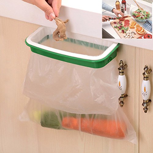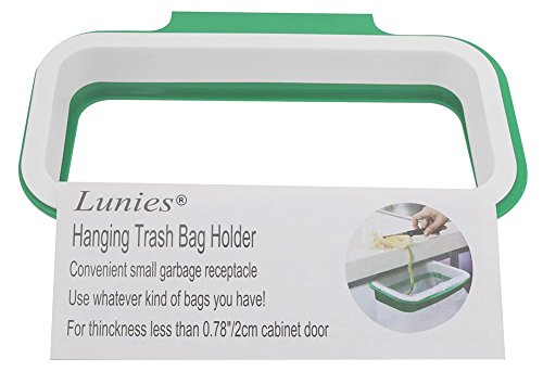 Lunies Hanging Trash Garbage Bag Holder for Kitchen Cupboard Green and White