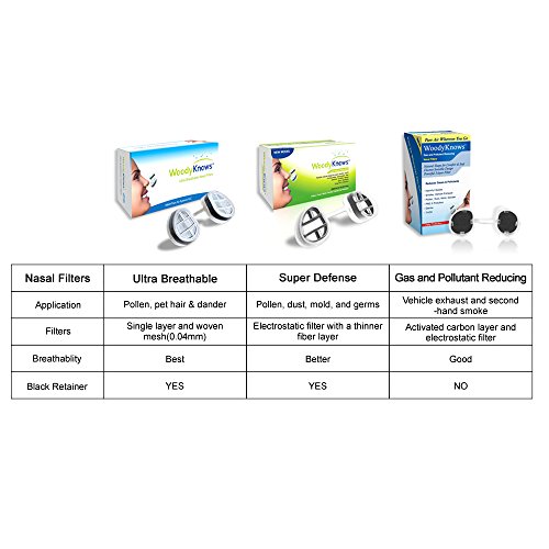 -. Title : WoodyKnows Super Defense Nose / Nasal Filters (New Model) Reduce Pollen, Dust, Dander, and Mold Allergens, Airborne Air Pollution PM2.5 Particles, Allergy Allergic Sinusitis Rhinitis Hay Fever Allergies Relief Reliever, Portable Air Purifier Cleaner Mask Hepa Screen, Alternitives of Medicine Spray Strips, Breathe Easy Pure Right Free, Grooming Gardening Tanning Tools Help Kits (2 Filter Frames and 6 Pairs of Replacement Filters)