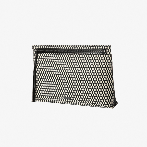 18 S/S 시즌 처음 선 보였던 루스트리노 클러치의 신규 버전입니다. 기존 루스트리노 클러치는 지퍼를 보이지 않기 위해 클러치 상단에 후다 (지퍼덮개)를 대어 금속이 보이지 않도록 하였다면, 이번 시즌 새롭게 나오는 루스트리노 클러치는 상단의 지퍼덮개를 빼고 금속지퍼가 보이도록 하여 기존보다 디자인이 심플하고 시원해 보이도록 하였습니다. 소재는 꾸준히 인기있는 소재인 아테나 화이트, 리얼스네이크 화이트(블랙브러쉬), 패치워크 램 을 사용하여 3스큐 진행하였습니다.