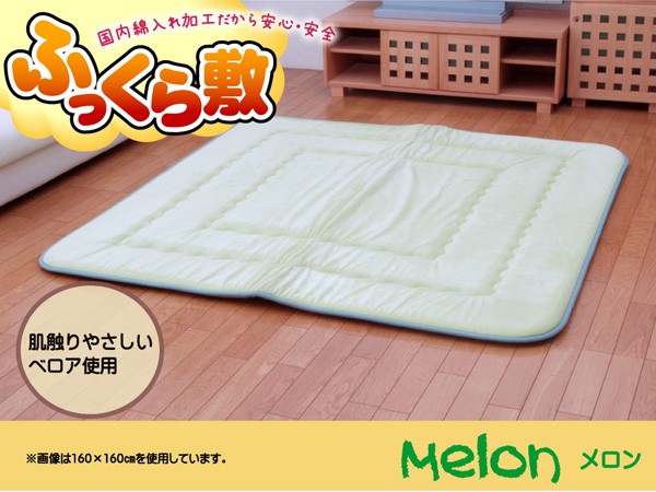 【商品名】国産(日本製)固綿40mm使用 ベロア生地 ふっくら敷 『メロンF敷』 ライトグリーン 100×160cm