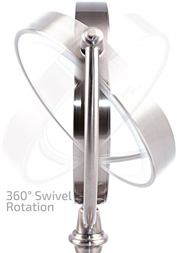 - COMPREHENSIVE – This dual-sided 360° swivel design luxury mirror features 1x5x magnification. 1x for a great view of your entire face all at once, and 5x for precision, because every detail counts (9.5” diameter)