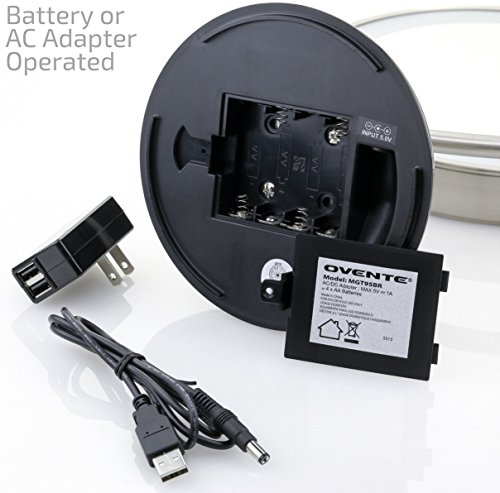 Ovente LED Lighted Makeup Mirror, Dimmable, Battery or USB Adapter Operated, 9.5 inch, 1x/5x Magnification, Polished Chrome (MGT95CH1x5x)