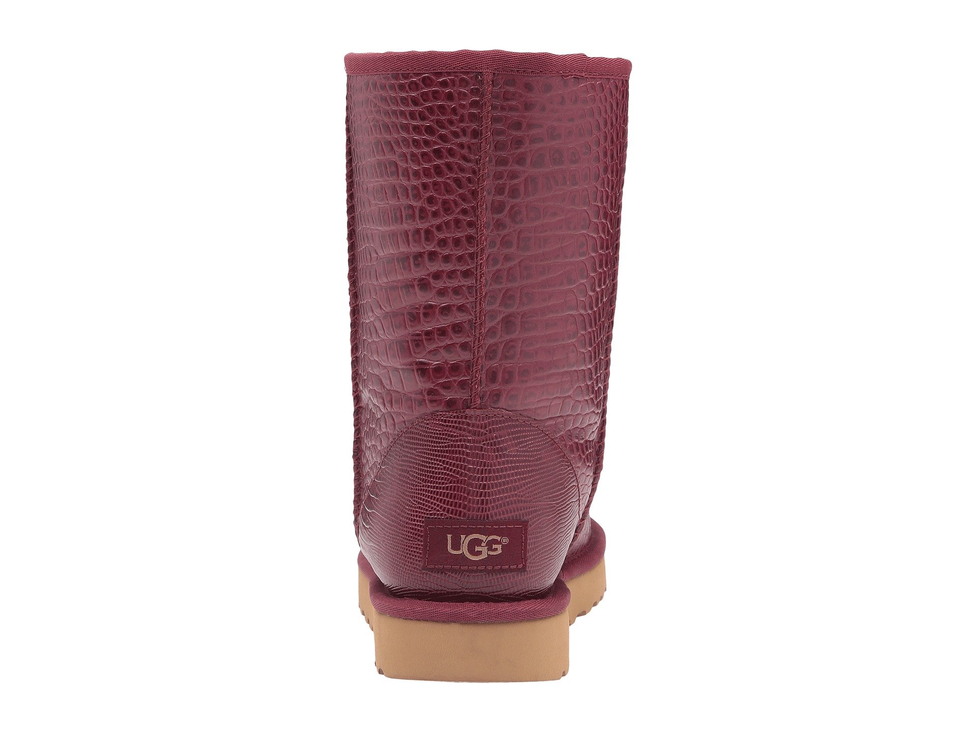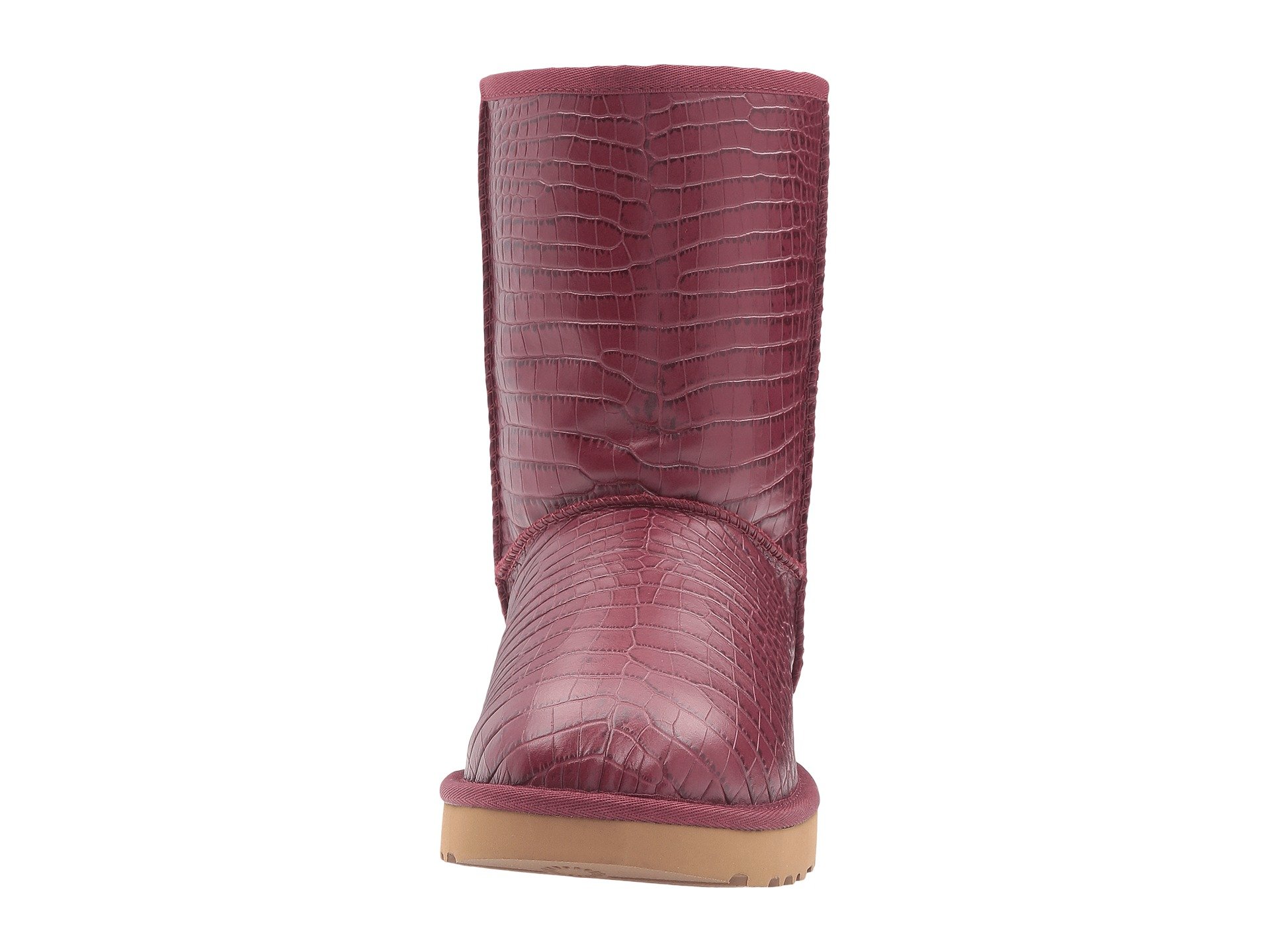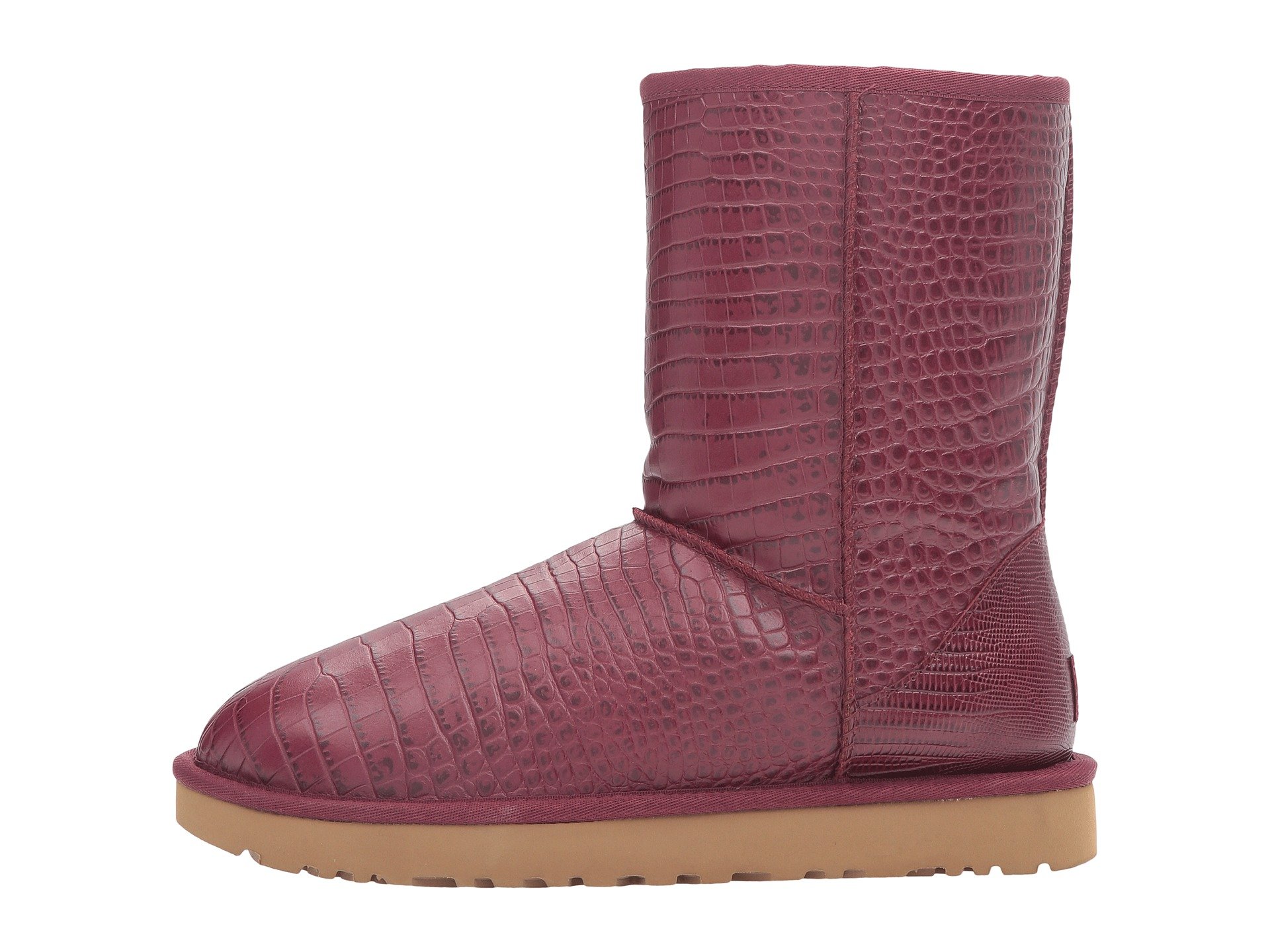 | Product Information SKU: #8727057This item is subject to quantity limitations.Experience the tension of the day release when you slip your feet into a pair of UGG? Classic Short boots.The shorter height fits great under or over pants.Leather upper with croc embossing for added appeal.Easy pull-on style.UGGpure™ wool lining and insole. Treadlite by UGG™ outsole provides increased traction, durability, cushioning and flexibility.Imported.Product measurements were taken using size 7, width B - Medium. Please note that measurements may vary by size.Measurements: Heel Height: 1 in Weight: 14 oz Circumference: 12 in Shaft: 8 1?2 in Platform Height: 1?2 in |