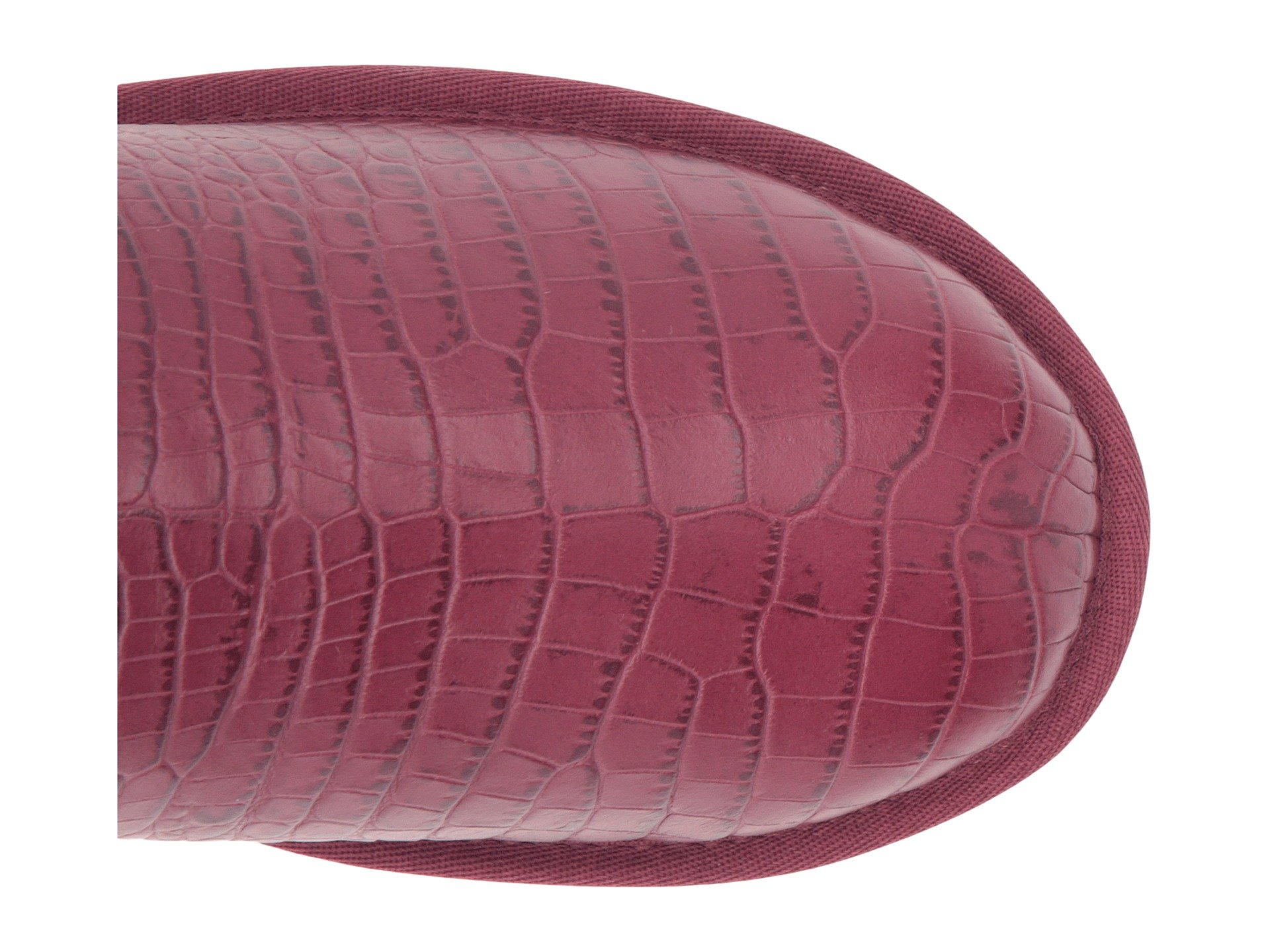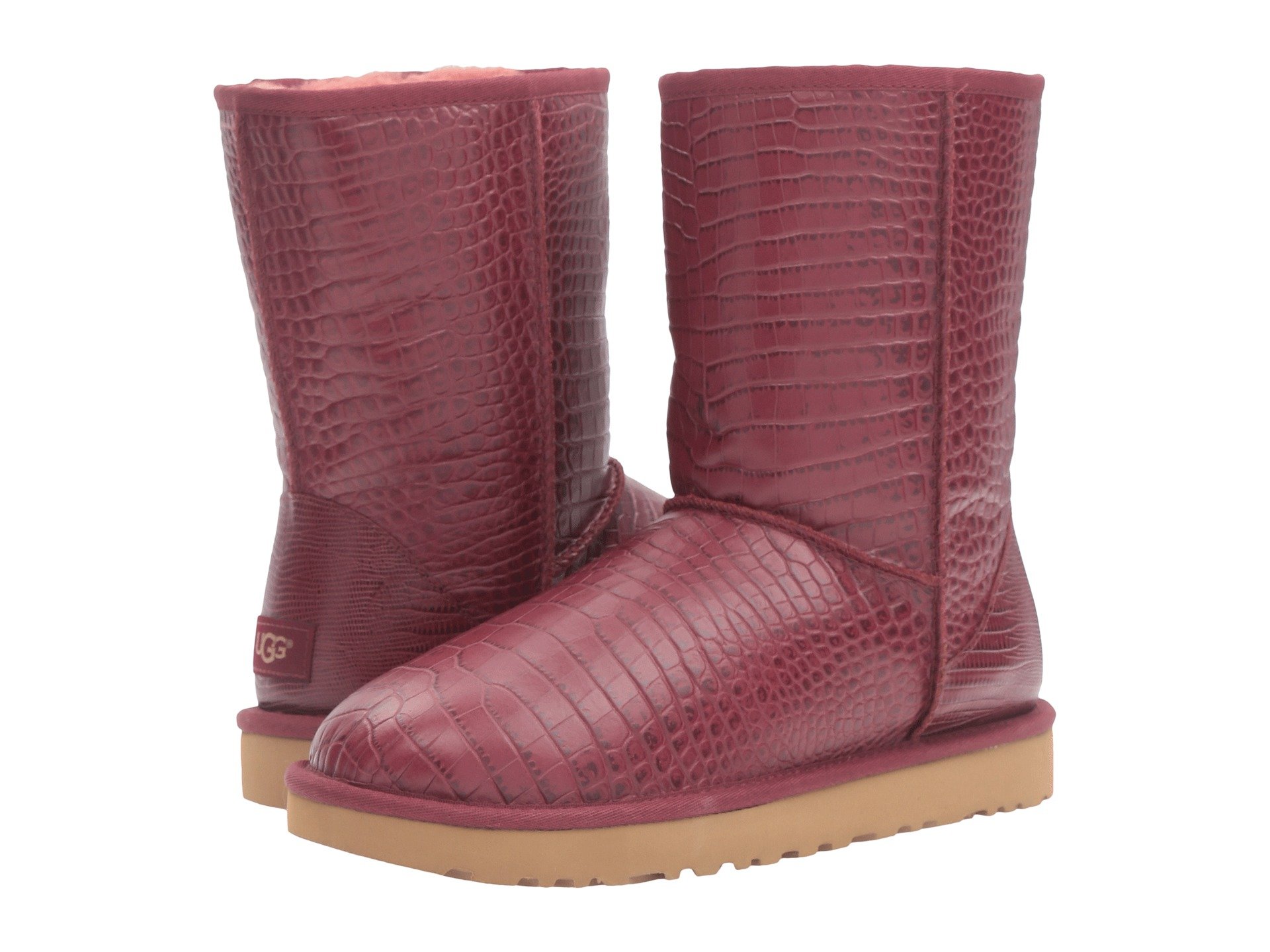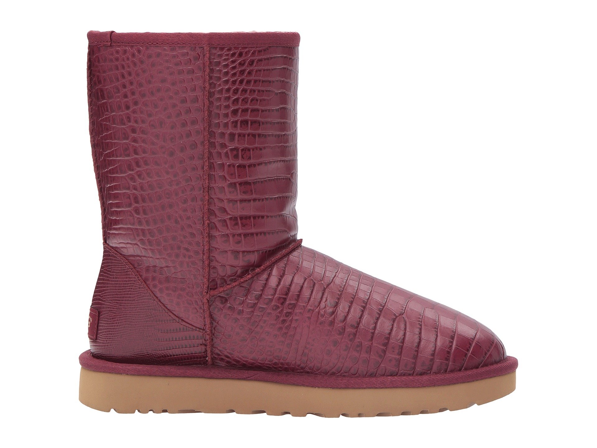 | Product Information SKU: #8727057This item is subject to quantity limitations.Experience the tension of the day release when you slip your feet into a pair of UGG? Classic Short boots.The shorter height fits great under or over pants.Leather upper with croc embossing for added appeal.Easy pull-on style.UGGpure™ wool lining and insole. Treadlite by UGG™ outsole provides increased traction, durability, cushioning and flexibility.Imported.Product measurements were taken using size 7, width B - Medium. Please note that measurements may vary by size.Measurements: Heel Height: 1 in Weight: 14 oz Circumference: 12 in Shaft: 8 1?2 in Platform Height: 1?2 in |