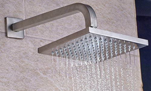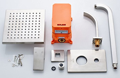 WANGEL Brushed Nickel Bathroom Wall-mounted Stainless Steel Square Rainfall Shower Head without Shower Arm Hot Cold Mixer Shower Faucet,Lead-free to cUPC USA Standard