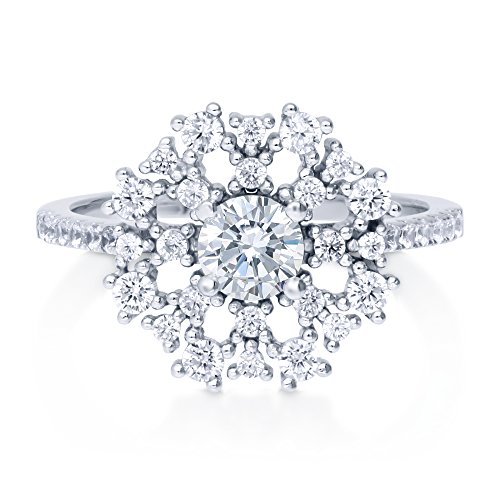 -. Feature : Metal: 925 sterling silver, rhodium plated, nickel free / Main Stone: 0.46 carat round cut cubic zirconia (5mm) / Accent Stone: 0.56 carat cubic zirconia / Ring Band Width: 1.5mm