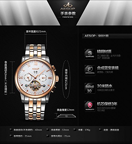 이솝9001손목시계 맨즈 손목시계 고급 자동self-wind Mechanical DayDate Tourbillon스테인레스 스틸 다이얼
