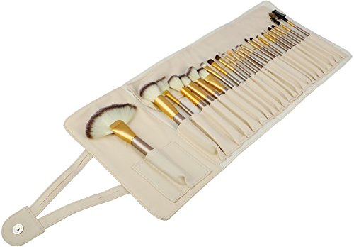 - KIT INCLUDES: Fan Brush x 2, Powder Brush x 1, Loose Powder Brush x 1, Blush Brush x 3, Rouge Brush x 1, Bevel Contour Brush x 1, Foundation Brush x 1, Shadow Brush x2, Eyeliner brush x 2, Liner Brush x 1, Concealer Brush x 1, Paste Brush x 1, Lipstick Brush x 4, Eyebrow Brush x 1, Mascara Brush x 1, Comb & Brow Comb x 1. All 24 pieces come in one portable, handy roll up bag with magnetic closure.