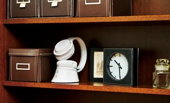 充電台にヘッドホンを置くだけで充電可能。テレビ台の脇など狭いスペースにも美しく収まる。