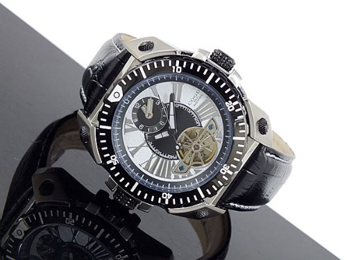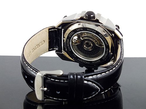 -. Feature : [サイズ] (約)H51×W48×D15.3mm (ケース径、リューズを除く)、重さ(約)125g、腕回り最大(約)19.5 cm、ベルト幅(約)最大21.6mm、(約)最少19.1mm / [素 材] ステンレス、レザーベルト / [仕 様] 自動巻き、3気圧防水、ホワイトシルバー(文字盤カラー)、ブラック(ベルトカラー) / [保証期間] 1年間