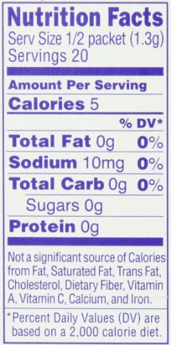 Sugar free. 0g Carbs per serving. 90% Fewer calories than leading soft drinks. Only 5 calories per serving. Artificial flavor. Add to bottled water. No caffeine. Low sodium. This product - 5 calories; leading soft drinks - 80 calories. Bottled water + pacFeature