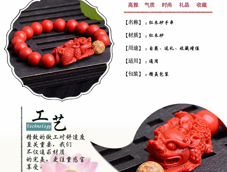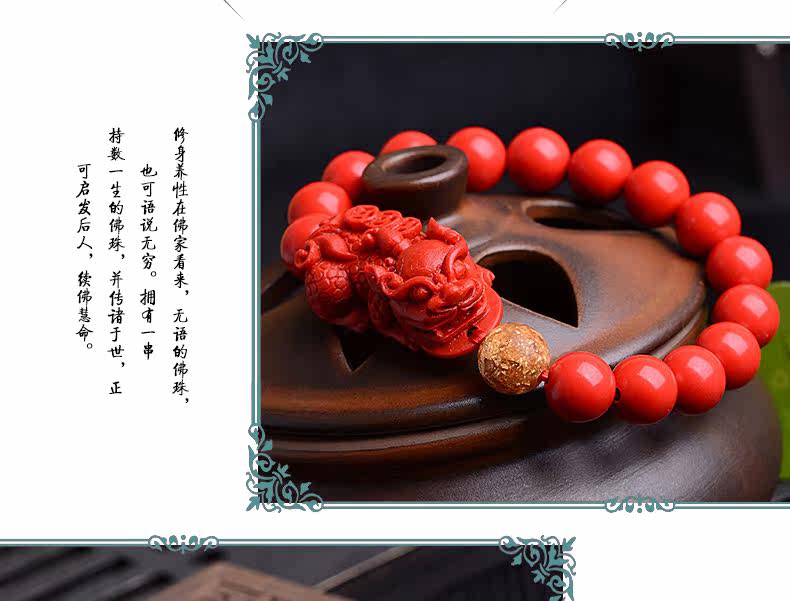开光红朱砂貔貅手链男女款佛珠手串金箔本命年情侣款饰品