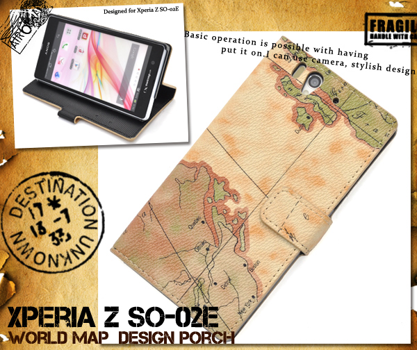 | | レトロな世界地図デザインがオシャレな、Xperia Z SO-02E用ケースポーチ!
