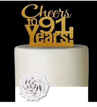 CakeSupplyShop Item#091CTA - 91st Birthday / Anniversary Cheers Super Gold Glitter Sparkle Elegant Cake Decoration Topper