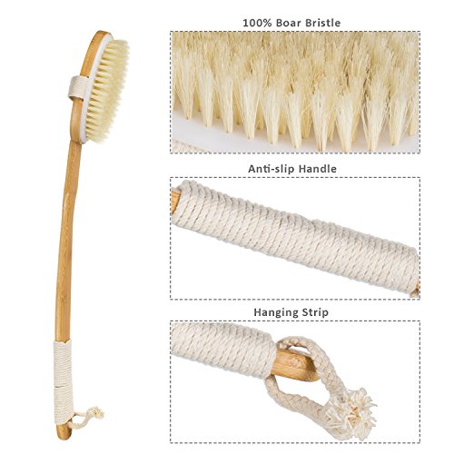 ENJOY A COMFORTABLE BATHING EXPERIENCE - As you use this bath brush, your skin will be as comfortable as ever, because it’s made with natural boar bristles. It works great as a dry skin brush, back scrubber, exfoliator and cellulite massager.