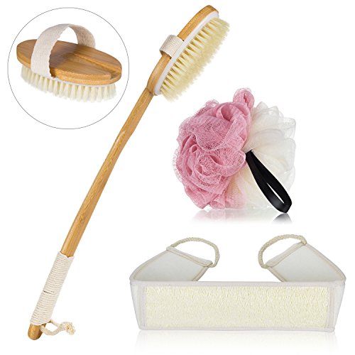 A LUXURIOUS GIFT - Are you looking a gift for your friends or for yourself? Look no further! Each of our body brushes comes with a 100% organic loofah back scrubber and a shower sponge to make a perfect body brush set for all-over body relaxation!