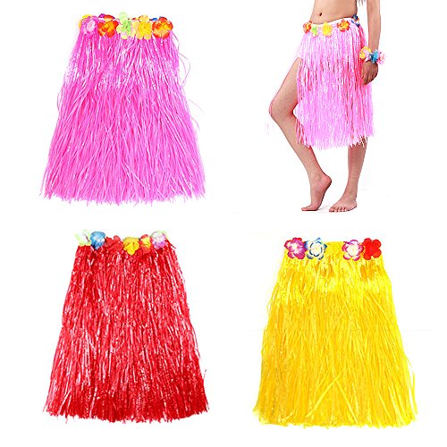 -. Feature : Package,1 pcs pink hula skirts, 1 pcs red hula skirts,1 pcs yellow hula skirts,elastic waistbands stretch to fit most. / Length is 23" ,sexy elegant design never out of date pattern. / Make it feel like a party in hawall-string hula skirt also features a row of colorful silk faux flowers. / Very eye-catching and make you look more charming. / Holiday party costumes hawaiian hula grass skirt dance.