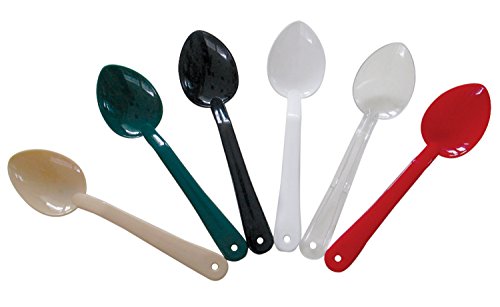 Studio : Excellante Publisher : Excellante Binding : Misc. Product Description Excellante 11" serving spoon, solid, polycarbonate, green. Made of break resistant polycarbonate material. Serving spoons resist heat up to 212° Degree F (100° Degree C). Can be used to meaty sauces, casseroles, rice or desserts. One piece molding process. NSF (National Sanitary Foundation) certified standards and are safe enough to use by any people. Handle size 6" x 1.25" x 0.375". Available in 6 colors: Beige, Black, Clear, Green, Red, White. 0