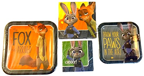 Zootopia Kids Birthday Party Tableware Supplies Bundle - Plates and Napkins Lunch & Dessert