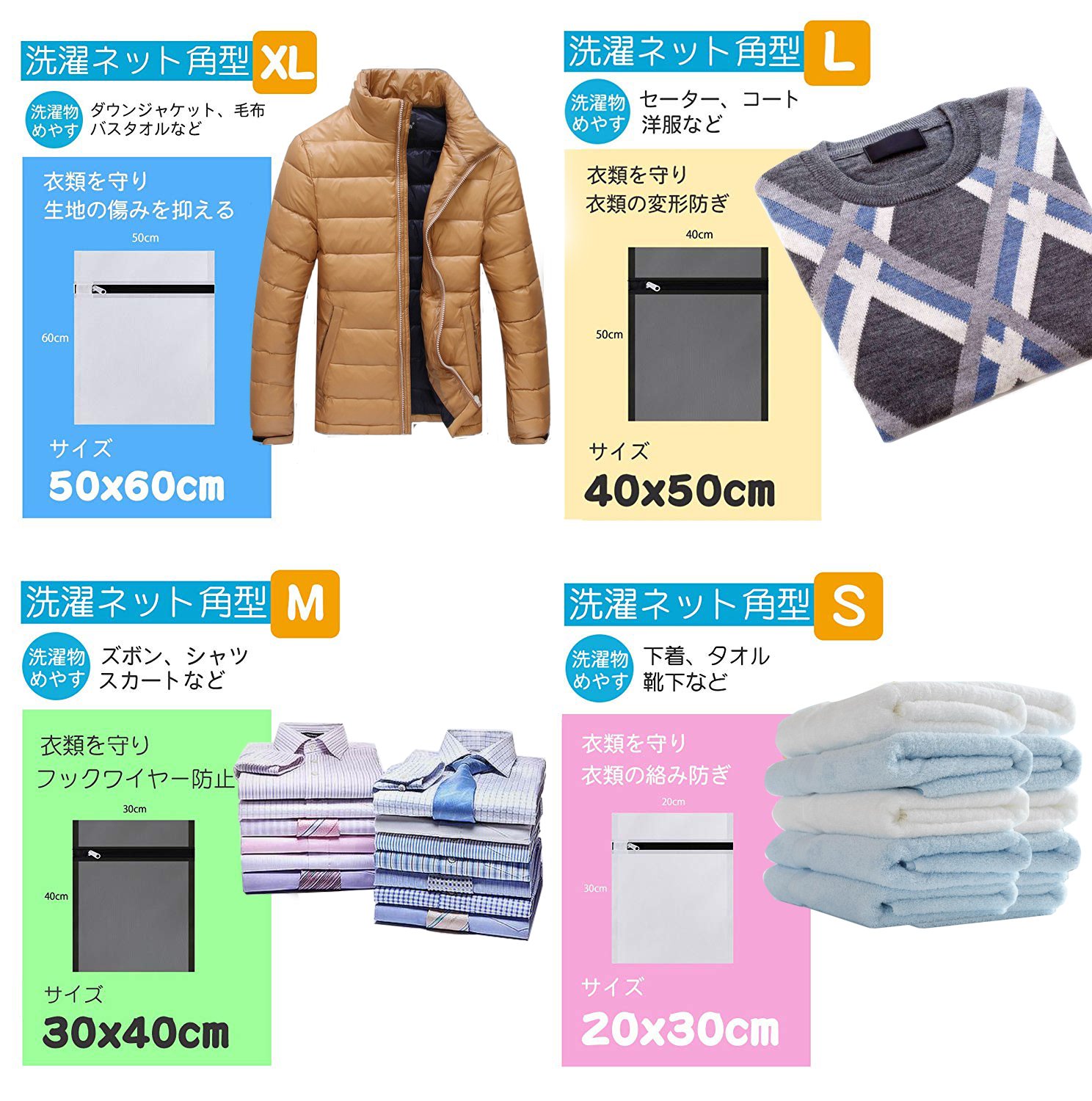 【たくさんの衣類に適用】✿4サイズのものがあって、シャツ、ブラウス、ズボン、セーター、コート、ブラジャー、ソックスなどの洗濯物によって分かれて洗えます ✿1件で小さいものは靴下・下着から、大きなものだと毛布まで満足できる洗濯ネットセット ✿普段良く洗濯する衣類を満足できます ✿コスパの高いランドリーネットセットです。お母さん、奥さんへのプレゼントも最適!