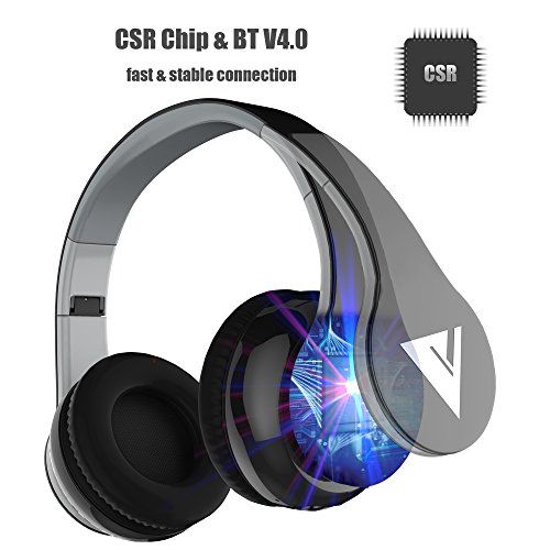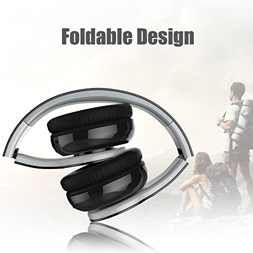 Feature : These Bluetooth over ear headphones are enabled with fast Bluetooth connection, convenient built-in microphone and volume control, it also comes with a detachable audio cable. / Adjustable headband allows for a custom fit for different head-size. Great portability and foldable headphones for putting into any backpack or laptop bag. / Features softly padded head phones, leatherette ear cushions that seal the ears to improve bass performance, block outside noise, and minimize sound leakage. / Equipped with 40mm dynamic elements for an extended frequency response and transmit sensitive and exquisite sound. / Perfect compatible with Bluetooth enable devices such as iPad, iPod, iPhone, laptop, Mac, tablets, DVD players and other audio devices with 3.5mm interface. Best headphones for you to enjoy.