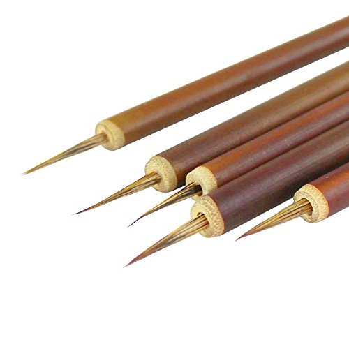 Winstonia Nail Art Brush Detailer Detailing Full Strong Sable Bristles Brushes Set 'Bambooristic' (5 pcs)