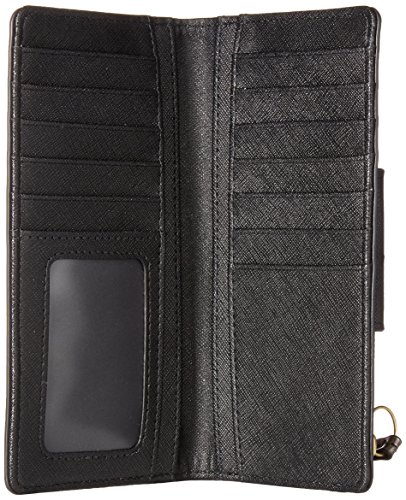 Product DescriptionThis metallic leather clutch features 12 credit card slots, four bill compartments and one id window.0