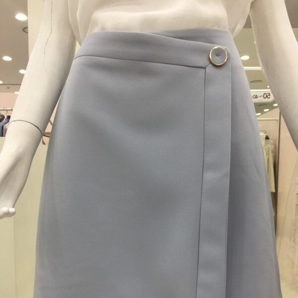 부드럽고 원단의 랩스커트에요~은은한 연한 블루색이 시원함을 주네요~