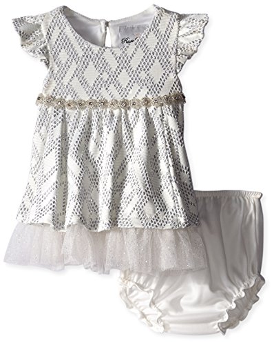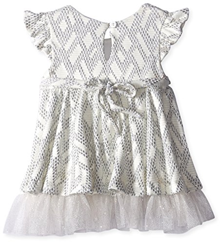 Rare Editions Baby Baby-Girls Infant Textured Knit Social Dress, White/Silver, 12 Months