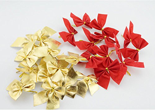 -. Binding : Kitchen -. Brand : Justoshop -. Feature : Mini 5.5cm Christmas Ribbon Bows / Each bow measures approximately 4" x 5" and has 2 Loops and 2 Tails / Each bow comes with a gold foil twist tie on the back / Color:Red,Gold / packaged:12pcs Bows -. Label : YIYO -. Manufacturer : YIYO -. ProductGroup : Home -. ProductTypeName : HOME -. Publisher : YIYO -. Studio : YIYO -. Title : 12 Pcs 5.5cm Mini Christmas Charms Decorative Hanging Ornaments Bowknot Ribbon Bows - Red