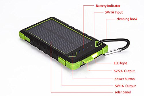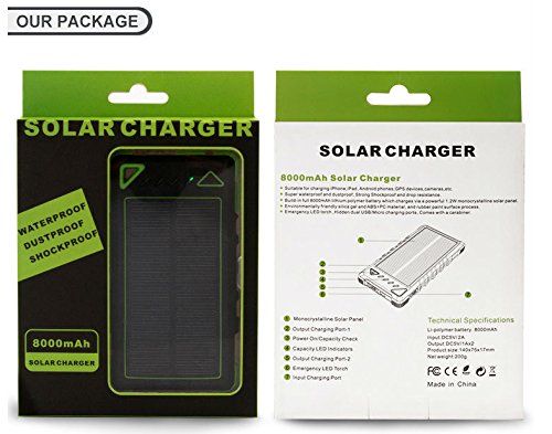 Boho Tronics Solar Power Bank High Capacity Waterproof Portable 8000mAh Charger (Black)