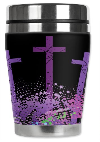 Mugzie Three Crosses "Mini" Travel Mug with Insulated Wetsuit Cover, 12 oz, Black
