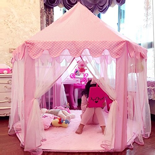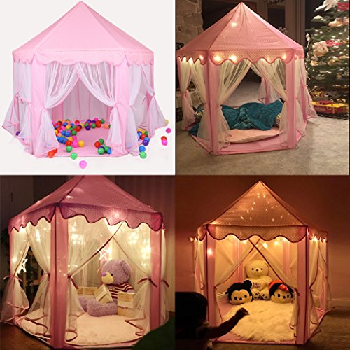 Sherosa Kids Indoor Princess Castle Play Tent Children Playhouse with Led Star Lights - Perfect Christmas Gift Presents For Childs Toddlers, Pink
