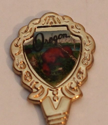 Oregon State Souvenir Gold Plated Collectible Twist Spoon 5" lpco