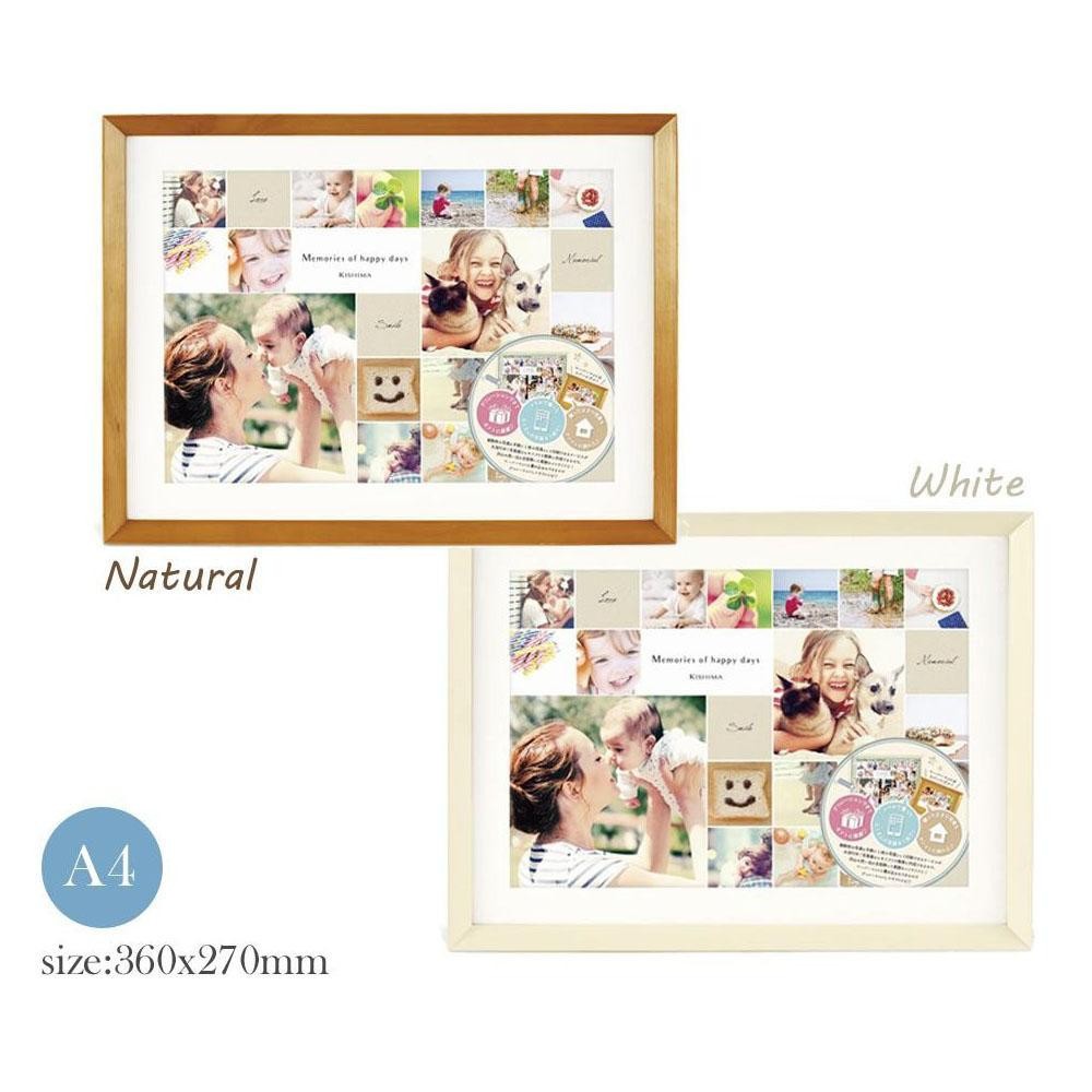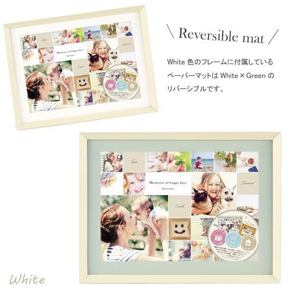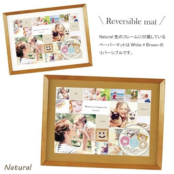 | スマートフォンなどの写真を、アプリや写真屋さんで手軽にランダムに配置して印刷できるサービスに最適なフォトフレーム。細かな写真をたくさん並べても邪魔せずそっと引き立ててくれるスッキリとしたデザインが魅力です。天然木を使用した上質な雰囲気に加え、リバーシブルのペーパーマットには書き込みもできるので、寄せ書きやデコレーションを施して贈り物にするのもオススメです。 |