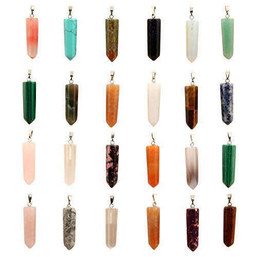12pcs Healing Pointed Chakra Beads Pendants Point Bullet Shape Quartz Crystal Teardrop Stone Random Color Beads Pendant (Mixed Color)