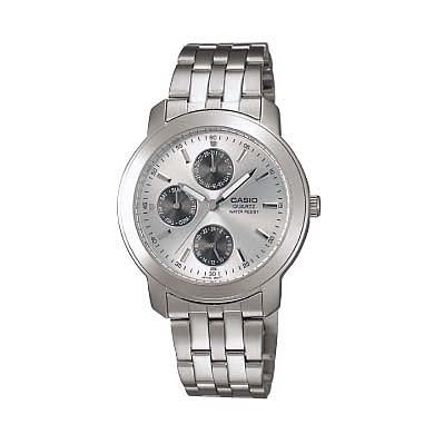 Brand, Seller, or Collection Name:Casio Model number:MTP-1192A-7A Part Number:MTP-1192A-7A Item Shape:Round Dial window material type:Mineral Display Type:Analog and digital Clasp:Fold-Over Clasp with Safety Case material:Stainless steel Case diameter:38.3 millimeters Case Thickness:9 millimeters Band Material:Stainless steel Band length:Men's Standard Band width:20 millimeters Band Color:Silver Dial color:Silver Calendar:Day and date Special features:measures-seconds Movement:Quartz Water resistant depth:50 Meters