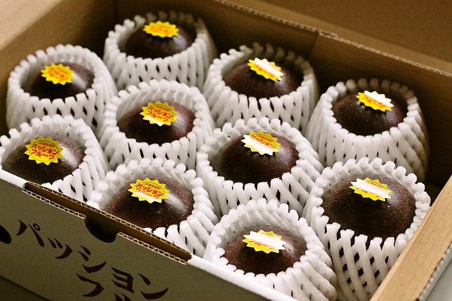 ![]() パッションフルーツの専用箱に8個~12個入れてのお届けとなります。 ※専用箱およびシールにつきましてはデザイン変更等がある場合もございます。ご了承ください。 | ||
