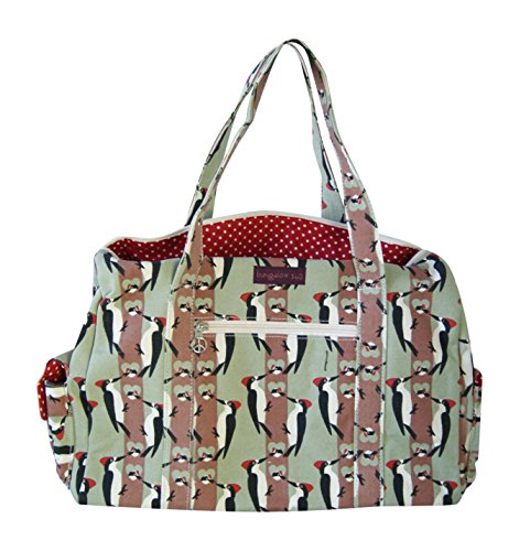 -. Feature : 100% cotton canvas / Measures 18" wide x 12" high x 7" deep. / Main zipper closure compartment with small zippered outer pocket. / 2 inner slip-in pockets and 1 zippered pocket. / 10 inch strap drop.