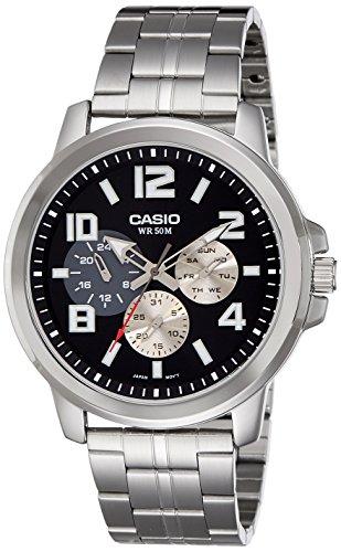 Brand, Seller, or Collection Name:Casio Model number:MTP-X300D-1AVDF (A1059) Part Number:MTP-X300D-1AVDF (A1059) Item Shape:Round Dial window material type:Mineral Display Type:Analog Case diameter:5.6 centimeters Band Material:Stainless steel Band width:22 millimeters Band Color:Silver Dial color:Black Special features:N/A Item weight:9.12 Ounces Movement:Japanese quartz Water resistant depth:50 Meters