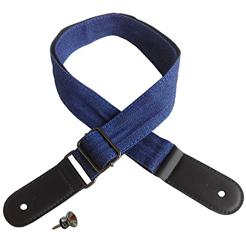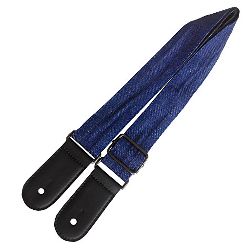 Xinlink Professional Adjustable Ukulele Shoulder Strap Classical Blue Denim with Button and PU Leather Ends for All Size Small Hawaiian Guitar Music Accessories