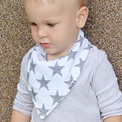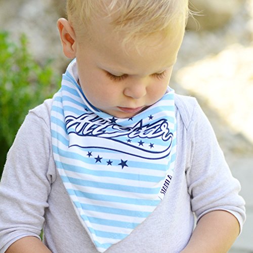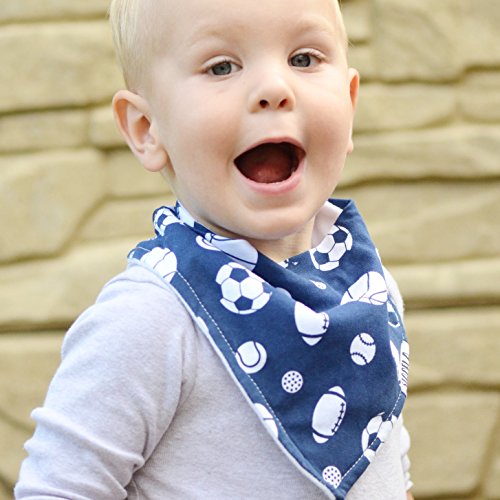 -. Binding : Baby Product -. Brand : Stadela -. Color : Navy Blue, Light Blue, Gray, -. Department : baby-boys -. EAN : 0850879007279 -. Feature : QUALITY SUPER SOFT ABSORBENT MATERIALS AND STURY DOUBLE STITCHING TO ELIMINATE FRYING - The stylish bandana bibs are made of 100% soft absorbent knitted cotton fabric on the front and polyester double sided super soft fleece on the back. Protect and keep your drooling/teething baby dry from all dribble and spit ups. No more wet clothes! / 3 ADJUSTABLE NICKEL FREE SNAP BUTTONS - Our bibdanas don't have the rough Velcro which would scratch your baby's neck. We use 3 nickel-free snap buttons for providing different sizes for all newborns and toddlers from 3 to 24 months. They are hidden in the back for a secure fit that your baby can't pull off or alter. This also provides the opportunity for the bandana bib to grow with your child. / HEART SHAPED TO COMFORTABLY FIT your baby's neck and SOFT "PANEL" AROUND THE NECK PREVENTING SKIN IRRITATION / HEAD TURNING FASHION ACCESSORY - The set is part of the LARGEST (30+) COLLECTION of contemporary bandana bibs on the market. You can match it with almost every popular nursery theme or trendy outfit. Each of our sets was designed to impress. / SATISFACTION GUARANTEED - We truly care about every single one of our customers. We go above & beyond with our customer care! If our products don't live up to your expectations, let us know and we will fix it! -. IsAdultProduct : 0 -. Label : Stadela Baby -. Manufacturer : Stadela Baby -. ProductGroup : Apparel -. ProductTypeName : ACCESSORY -. Publisher : Stadela Baby -. Size : Adjustable -. Studio : Stadela Baby -. Title : Stadela Baby Adjustable Bandana Drool Bibs for Drooling and Teething Nursery Burp Cloths 4 Pack Baby Shower Gift Set for Boys – Sports Champion Baseball Football Soccer Basketball All Star -. UPC : 850879007279